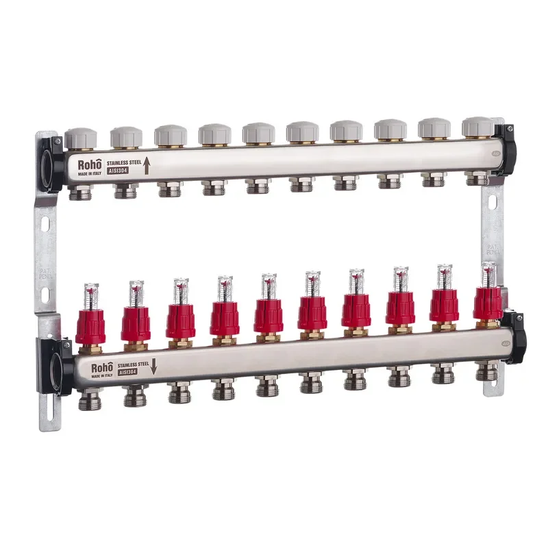Коллектор с расходомером и термостатическими клапанами Roho R804-10 - 1"х 10 вых. (RO0042)