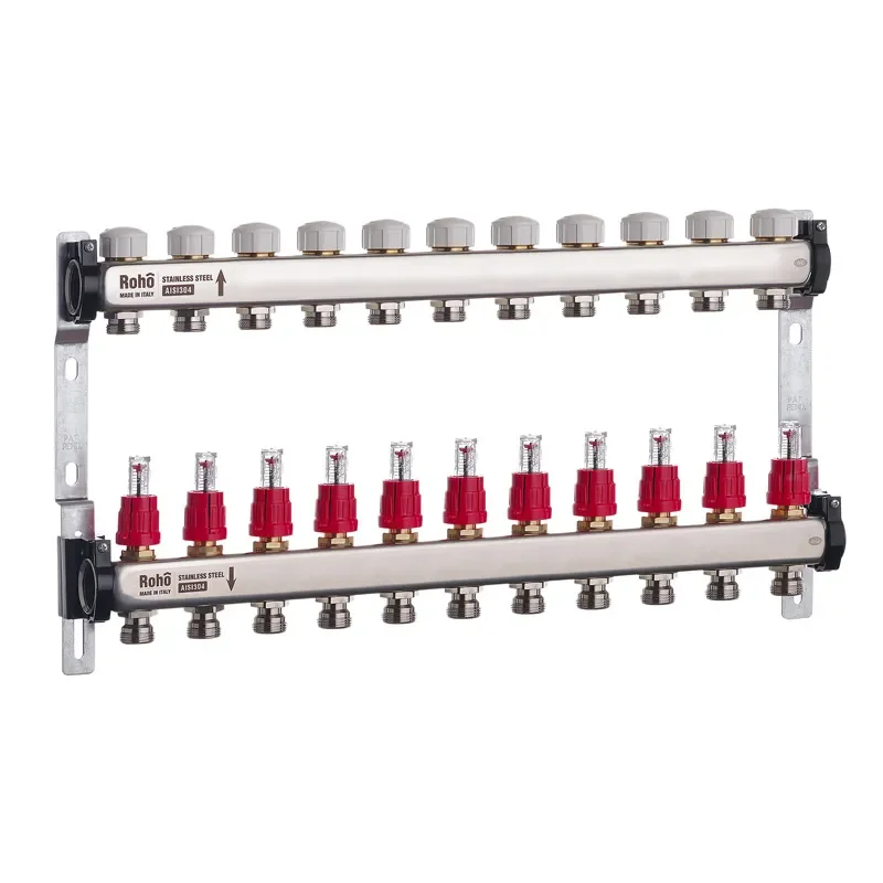 Коллектор с расходомером и термостатическими клапанами Roho R804-11 - 1"х 11 вых. (RO0043)