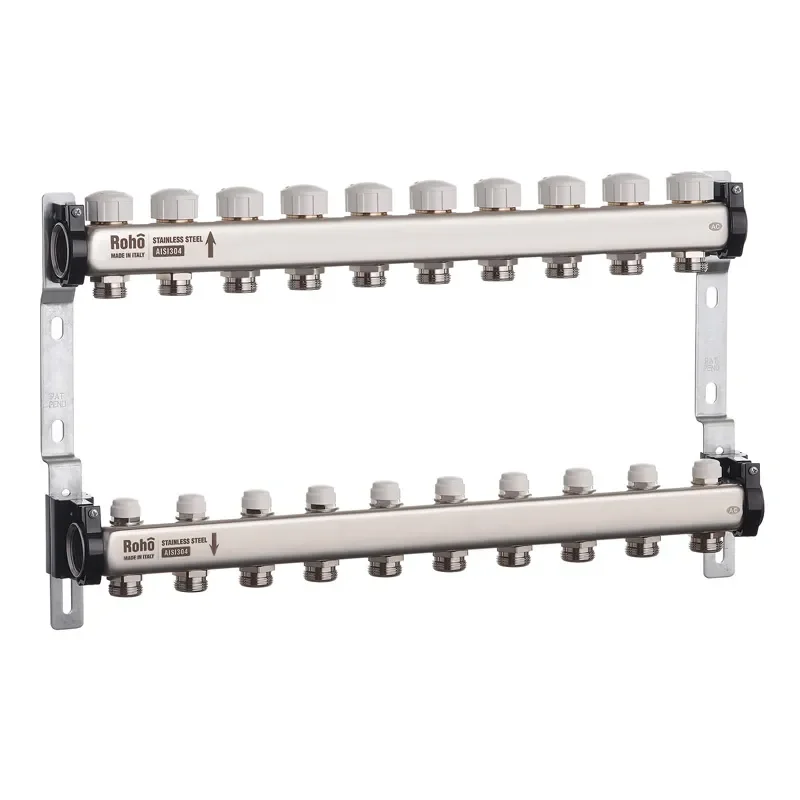 Коллектор с термостатическими и запорными клапанами Roho R805-10 - 1"х 10 вых. (RO0064)