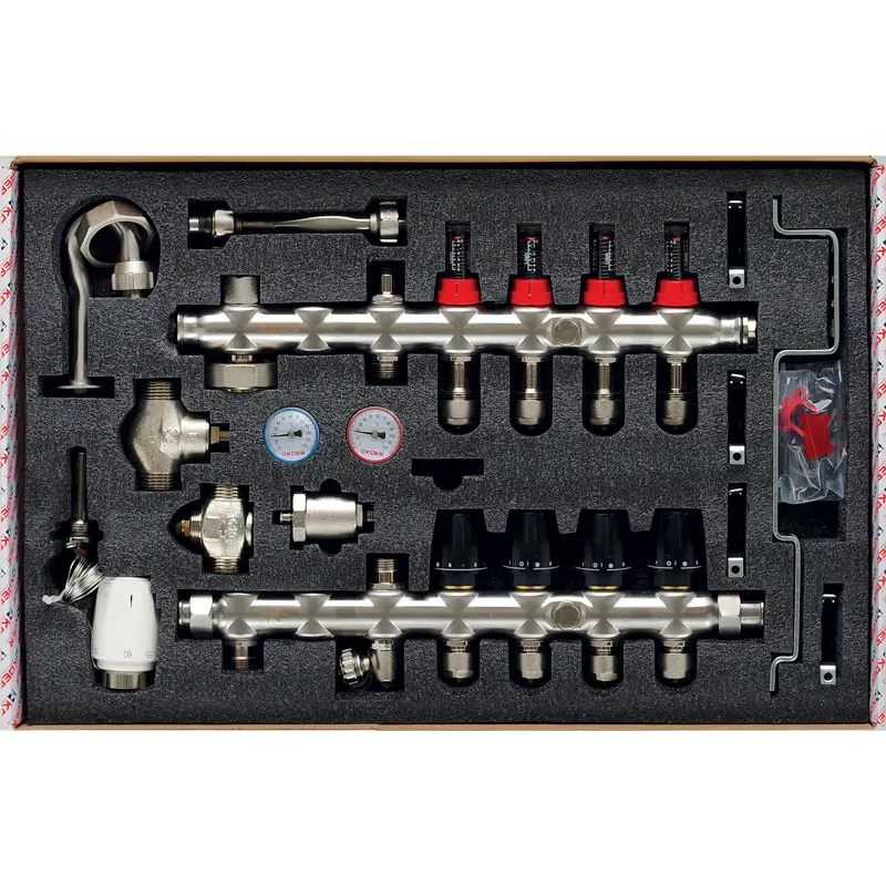 Коллектор со встроенным смесит. узлом Koer KR.S1011-4 1"х4 SUS304 и евроконусами 3/4-16 (KR2927)