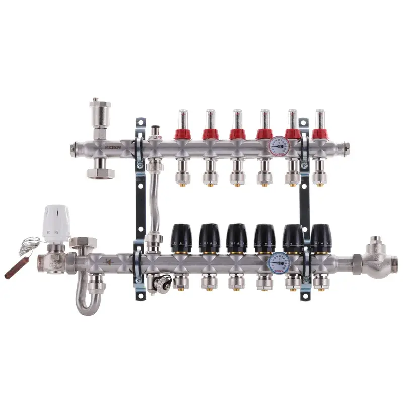 Коллектор со встроенным смесит. узлом Koer KR.S1011-6 1"х6 SUS304 и евроконусами 3/4-16 (KR2929)
