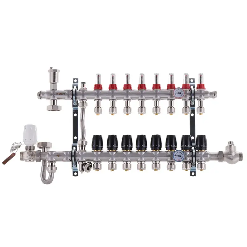 Коллектор со встроенным смесит. узлом Koer KR.S1011-8 1"х8 SUS304 и евроконусами 3/4-16 (KR2931)