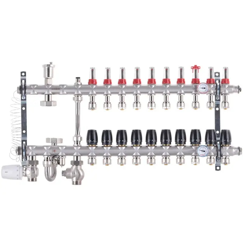 Коллектор со встроенным смесит. узлом Koer KR.S1012-10 1"х10 SUS304 и евроконусами 3/4-16 (KR2943)