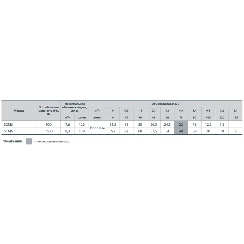 - Максимальная объемная подача: 8,3 м³/ч (138 л/мин)