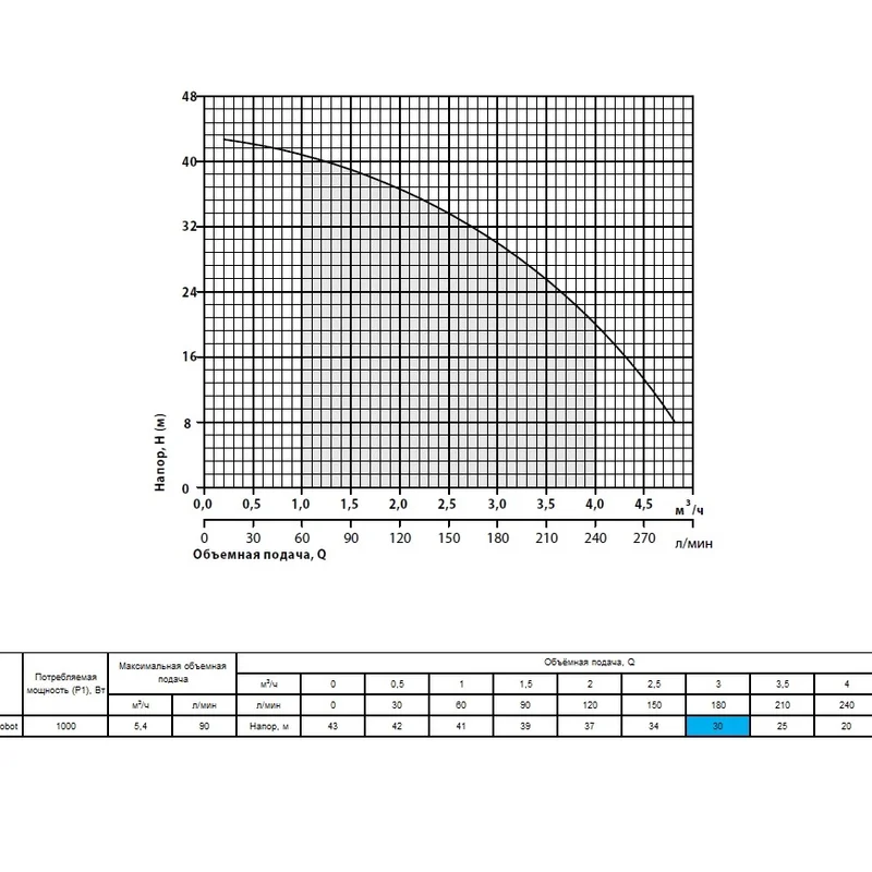 - Максимальный напор 43 м