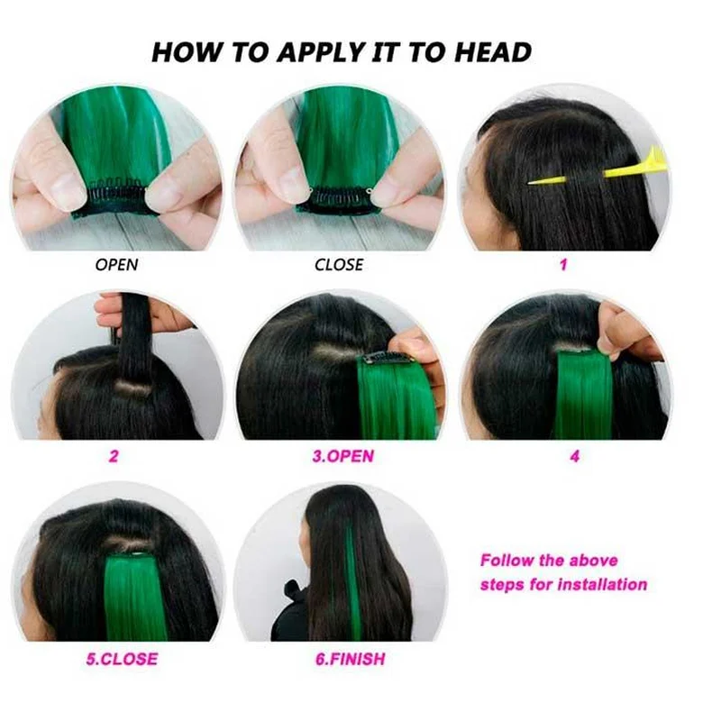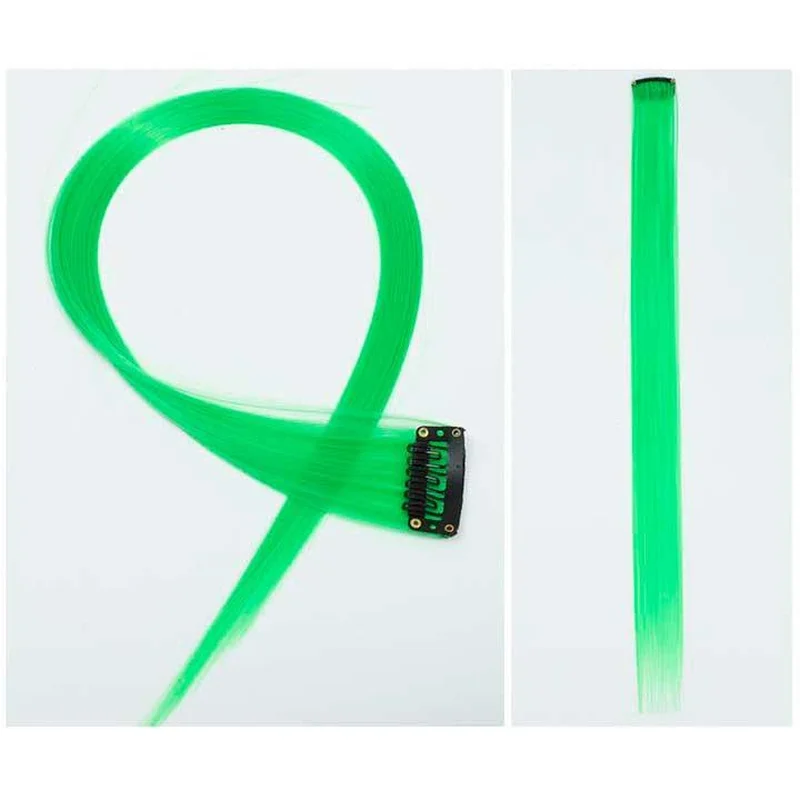 Кольорове пасмо волосся на шпильках 60 см зелене Накладне волосся