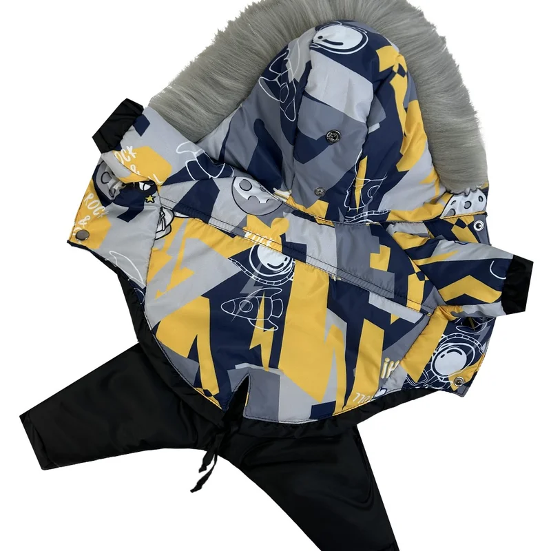 ексклюзивна модель комбінезона-трансформера, знімні штани тканина водовідштовхувальна плащівка наповнювач синтепон подклад водовідштовхувальна плащівка штани знімні, на потайний змійці застібається кнопками на животі є капюшон з кнопкою фіксатором є отвір для протягування повідця на шиї модель унісекс
