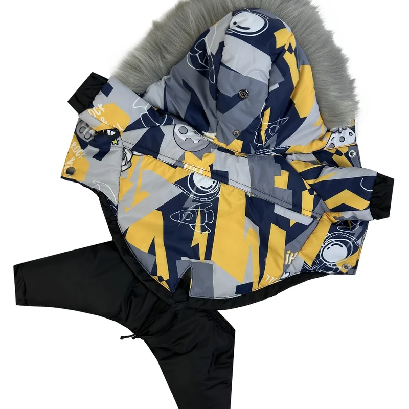 ексклюзивна модель комбінезона-трансформера, знімні штани тканина водовідштовхувальна плащівка наповнювач синтепон подклад водовідштовхувальна плащівка штани знімні, на потайний змійці застібається кнопками на животі є капюшон з кнопкою фіксатором є отвір для протягування повідця на шиї модель унісекс