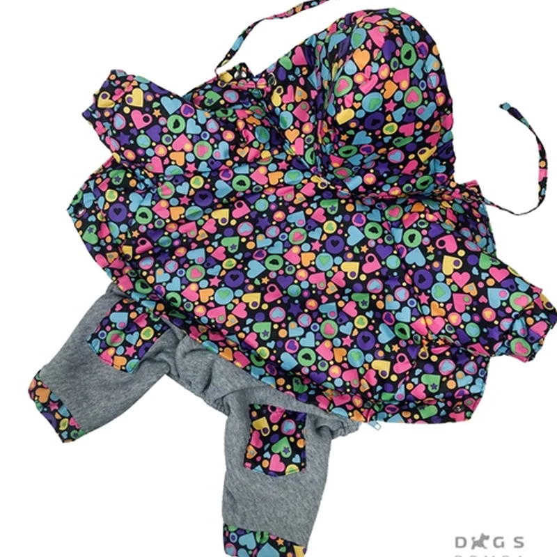 ексклюзивна модель комбінезона-трансформера, відстібні штани тканина куртки водовідштовхувальна плащівка наповнювач куртки синтепон подклад куртки водовідштовхувальна плащівка штани з трикотажу на флісі штани знімні, на потайній змійці застібається кнопками на животі є капюшон є отвір для протягування повідця на шиї на штанцях резинки модель унісекс