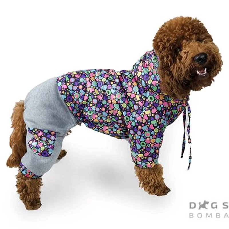 ексклюзивна модель комбінезона-трансформера, відстібні штани тканина куртки водовідштовхувальна плащівка наповнювач куртки синтепон подклад куртки водовідштовхувальна плащівка штани з трикотажу на флісі штани знімні, на потайній змійці застібається кнопками на животі є капюшон є отвір для протягування повідця на шиї на штанцях резинки модель унісекс