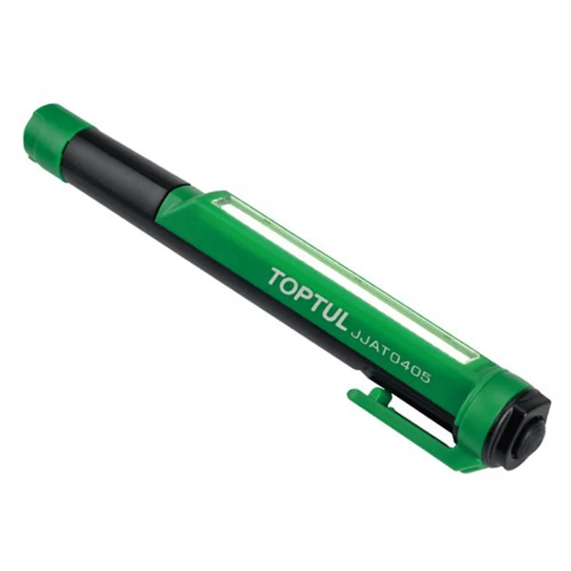 Потужний освітлювальний ліхтарик для огляду з LED лампою 5W COB з мелкогабаритными розмірами 165х25х30 мм.Ліхтар світлодіодний TOPTUL JJAT0405 оснащений кишеньковим затиском і магнітом для зручного кріплення в будь-якому місці. Корпус виконаний з міцного ABS матеріалу. Яскравість становить 230 Люмен, 450 люкс на 0,5 метра. Працює від 3-х батарейок ААА, які не входять у комплект.
