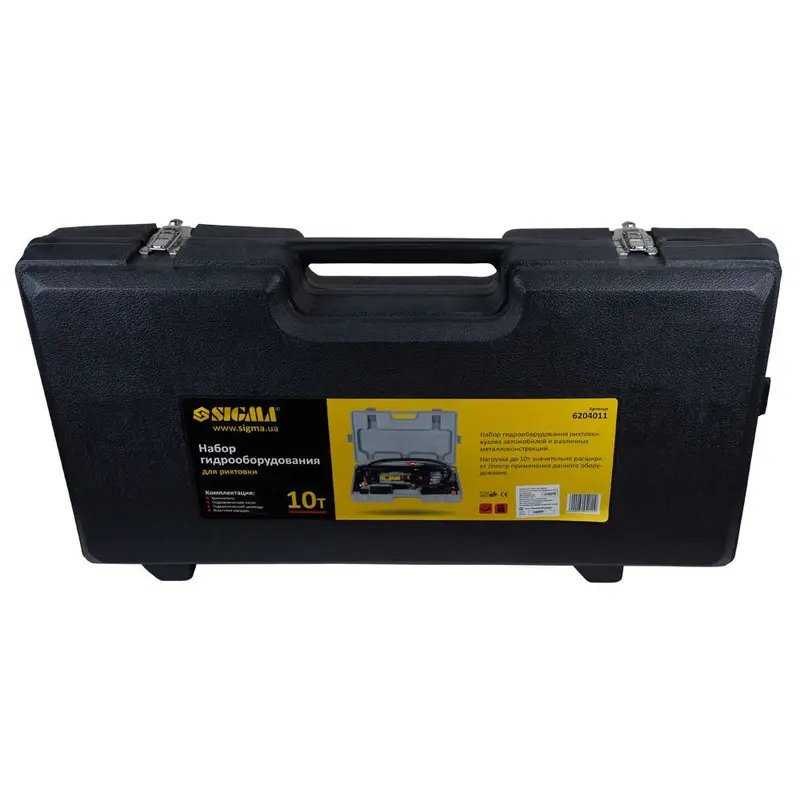 Набір гідрообладнання для рихтування 10т (кейс) Sigma 6204011 Набор гидрооборудования для рихтовки 10т (кейс) Sigma (6204011) предназначен для рихтовки или растяжки кузовов автомобилей, а также металлоконструкций. Набор произведен из материалов высокого качества. Пластиковый кейс, в котором поставляются все компоненты набора, используется для удобства транспортировки и хранения.Данный набор применяется в автосервисах и на СТО, подойдет для выполнения работ на промышленных предприятиях. Комплектующие для рихтовки кузова: Стяжка гідравлічний циліндр ‒ призначена для стяжки деталей. Використовують для рихтування різних видів кузовів. Спільно зі стяжкою використовують ручний гідравлічний насос.Ручний гідравлічний насос ‒ призначений для ручного нагнітання тиску масла в робочих гідравлічних циліндрах розтяжок і стяжок. В насосі застосовується гідравлічне масло, яке слабо піддається стисненню.Гідравлічні розпірки ‒ використовують для надійної фіксації конструкції. Розпірки дозволяють витримують навантаження до 10т і служать для запобігання різних перекосів. У набір входять: • Удлинители: 186мм, 313мм, 516мм, 745мм• Упорная насадка удлинителей с насечками• Гидравлический клин 0.5т• Большая резиновая головка• Опора гидравлического цилиндра• Насадка на поршень• Насадка на шток• Клинообразная насадка• V-образная насадка• Переходник• Гидроцилиндр 10т• Шланг высокого давления 1780мм• Пластиковый кейс Основные характеристики: • Объем рабочей жидкости 520мл• Габаритные размеры 810×435×180мм• Давление при максимальной нагрузке 40МПа• Количество предметов 16шт• Максимальное усилие 10т• Ручной привод
