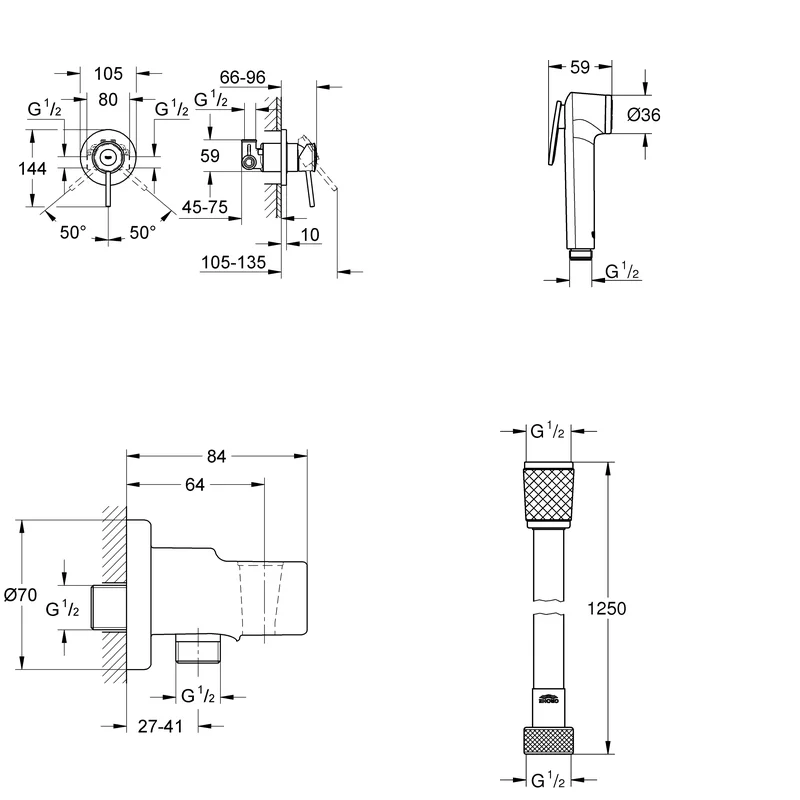 Комплект гигиенического душа Grohe BauClassic (UA11104801)