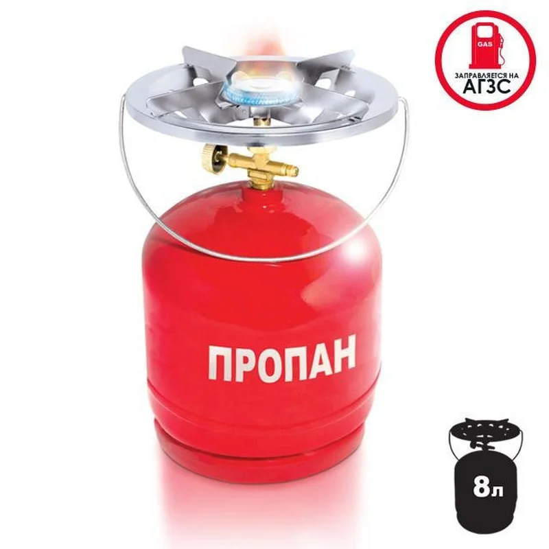 Газовий балон з пальником - невід'ємний атрибут у туристів, любителів кемпінгу, мисливців, рибалок. Також виручить будь-кого, хто подорожує або перебуває у польових умовах. Він допоможе вам швидко та легко приготувати їжу, адже для цього не потрібно витрачати час на пошук та розпалювання дров. У воєнний час також може використовуватися як автономне джерело тепла та світла за відсутності електромережі. Економна робота Балон заправляється газом на автозаправках і здатний працювати протягом кількох тижнів. Витрата палива набагато економніша, у порівнянні зі звичайними газовими балончиками зі цанговим з'єднанням. Витрата газу становить 100-145 г/годину. Надійний та безпечний Балон з металевими стінками, товщиною 2,5 мм, має латунний вентиль, він повністю герметичний та виключає витік газу. Стійкий до механічних пошкоджень, має підвищену міцність, необхідну під час заправки, експлуатації та транспортування всього балона. Також газовий набір оснащений безпечним запірним пристроєм, запобіжним клапаном проти надмірного тиску. Зручний у використанні Цей балон з пальником відмінно підходить для приготування їжі у великих обсягах, завдяки великій, стійкій конфорці, діаметром 220 мм. Широке полум'я регулюється, а сам процес приготування відбувається так само швидко, як і на звичайній газовій плиті. Каструлі та казанки надійно розміщуються на міцній металевій підставці й не перевертаються під час приготування їжі. Продуманий до дрібниць Балон має широке дно з підставкою, тому він стійко стоїть навіть на нерівній землі. Ручка, розміщена на конфорці для зручнішого транспортування всього комплекту. Вибирайте більше товарів з категорії: https://intertool.ua/catalog/tehnika-dlya-doma-i-sada/pliti-gazovie-i-gorelki/