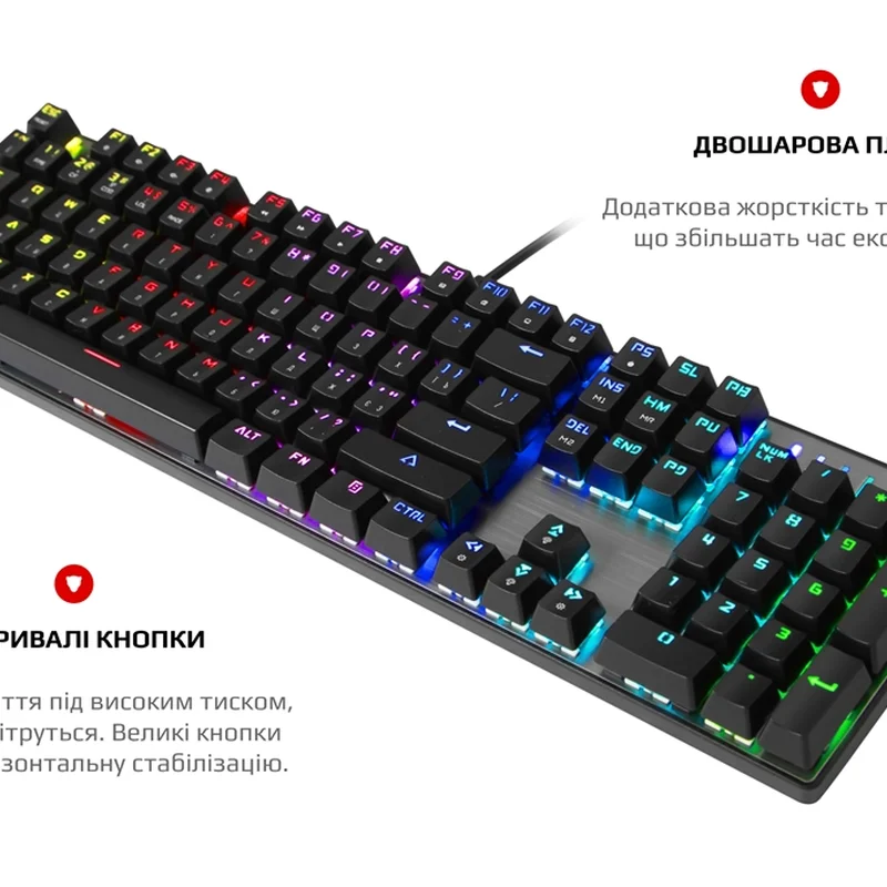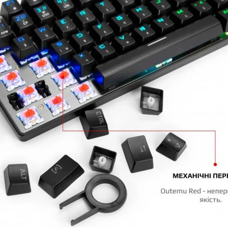 КлавіатураЗручний та вдалий вибір.В цій моделі досягнуті всі переваги механічних перемикачів. Стильний сучасний та ергономічний дизайн що гарантує комфорт та зручність використання. Виготовлена з якісного пластику та алюмінієвого сплаву.Справжня механіка.Механічні перемикачі Outemu одного з лідерів ринку, надають повний контроль над дійством та надшвидке спрацювання. Надійність, довговічність та точність повторення зусилля натискання один до одного від партії до партії. Збільшений ресурс роботи та покращений захист від окислення за рахунок унікальної конструкції перемикача.Більше ніяких промахів, завжди в ціль!Висока точність спрацювання механічних перемикачів завжди в тій самій точці ходу перемикача, для будь-якої кнопки.Витривалі кнопки.Виконані за технологію подвійного лиття під високим тиском з підвісним кріпленням, що додає неперевершеної зносостійкості та гарантує тривалість життя до 50 мільйонів натискань клавіш. Великі кнопки мають подвійний підвіс та горизонтальну стабілізацію.NKRO Anti GhostingВбудований ігровий чіп виключає будь-які випадковості. Блокування клавіші Windows задля запобігання виходу з ігрової сесії. Індивідуальні налаштування RGBОкрім 9 видів світлових ефектів та ігрових режимів, з регулюванням яркості та швидкості, для Counter Strike, Leage of Legend та ін., є налаштування індивідуальних ігрових режимів підсвічування.Двошарова плата.Неперевершена якість монтажу та додаткова жорсткість. Значно більший час експлуатації навіть для самих емоційних гравців в самих екстремальних ситуаціях.Металева панель.Гарантує жорсткість та цілісність конструкції. Виключає люфти, скрипи та неприємний брязкіт пластикових корпусів.Безперебійність передачі данихВисокоякісний м"який кабель та позолочений USB роз"єм забезпечують якість контакту та безперебійність передачі даних, а застібка допоможе організувати кабелі на робочому столі та у подорожі.Стабільність положенняЗа будь-яких умов, клавіатура на своєму місті завдяки протиковзким ніжкам з м"якої резини.МишаІдеальна ергономіка та надійністьЗручна та надійна миша MOTOSPEED.Ергономічний дизайн, що гарантує комфортне відчуття та знижує втому. Точна зборка та якісний пластик, відсутність люфтів та надмірних зазорів нададуть задоволення від користування. Механічні мікроперемикачі HuanoОдного з лідерів ринку, надають повний контроль над дійством та надшвидке спрацювання. Надійність, довговічність та точність повторення зусилля натискання один до одного від партії до партії. Чітке та тактильно приємне натискання кнопок без люфтів та надмірних зазорів.Підсвічування та индикаціяЯскраве та ефектне повнокольорове підсвічування RGB, 16,8 млн, з можливістю зміни режимів, що занурить вас у атмосферу гри. Реалізована індикація обраного режиму DPI за допомогою кольору підсвічування логотипу. Тефлонові падиТовстий тефлон великої площі забезпечить чудове ковзання та тривале використання. М"який та гнучкий високоякісний кабель гарантує довговічність та зручність використання.