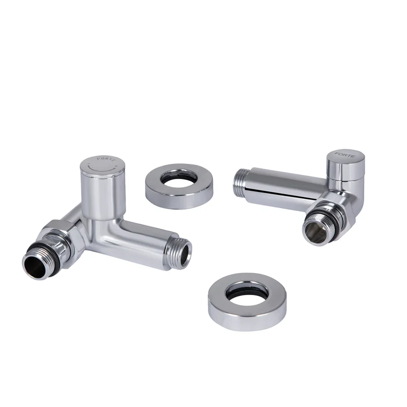 Комплект кранів SD Forte 1/2" НР кутовий під ТЕН SF395W15HE буде потрібним при встановленні рушникосушарки. Приладові крани виготовлені з високоякісної латуні, покриття — хромоване.