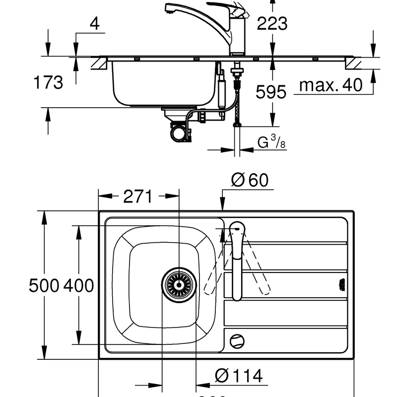 Комплект кухонної мийки і змішувача Grohe K200 (31565SD1)