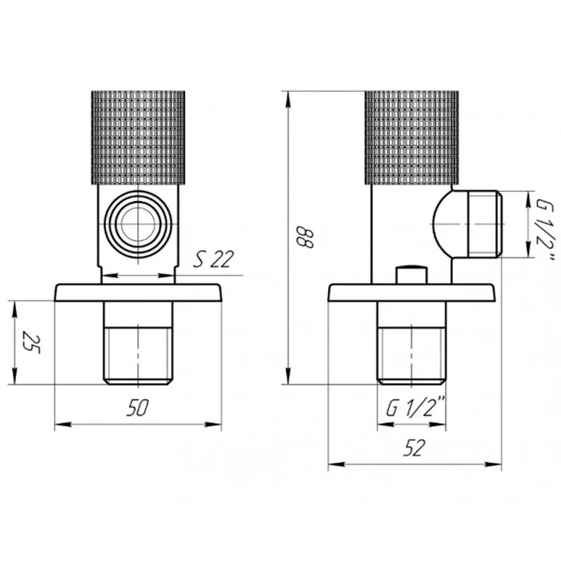 Технічні дані кутового приладового крана SOLOMON EXCLUSIVE:
