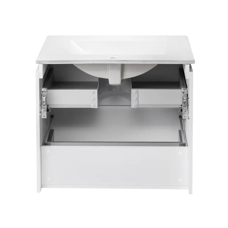 Підвісна тумба з раковиною Qtap Albatross QT0172TP700D3070CW виконана з отвором під сифон і перелив. Корпус тумби виготовлено з ДСП, з двошаровою ламінацією білого кольору, фасадна частина з МДФ з глянцевим покриттям. Оснащена двома висувними ящиками з механізмом доведення. Тумба виконана в елегантному лаконічному стилі, що доповнить раковину і впишеться в дизайн будь-якої ванної кімнати.