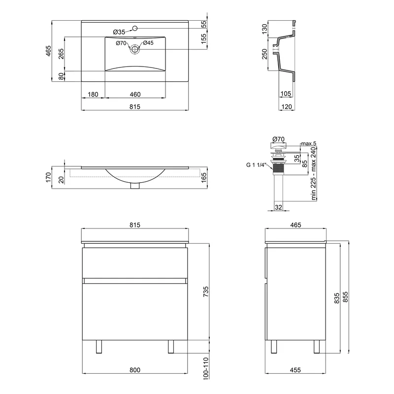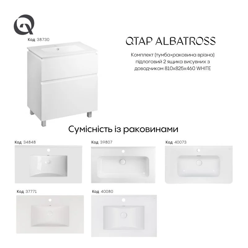 Комплект Qtap Albatross 810х825х460 White тумба підлогова + раковина урізна QT0171TN800D3080CW