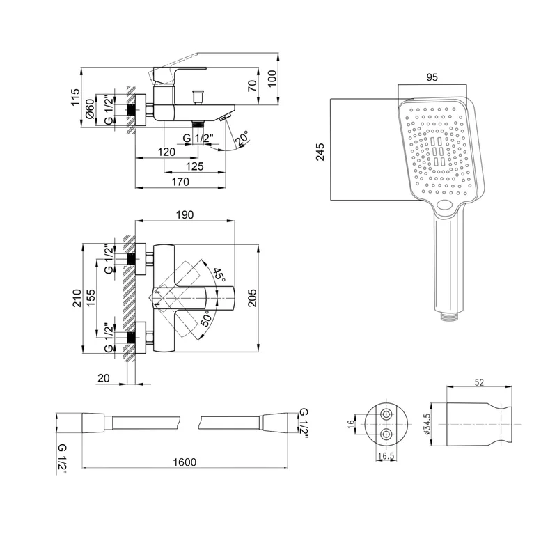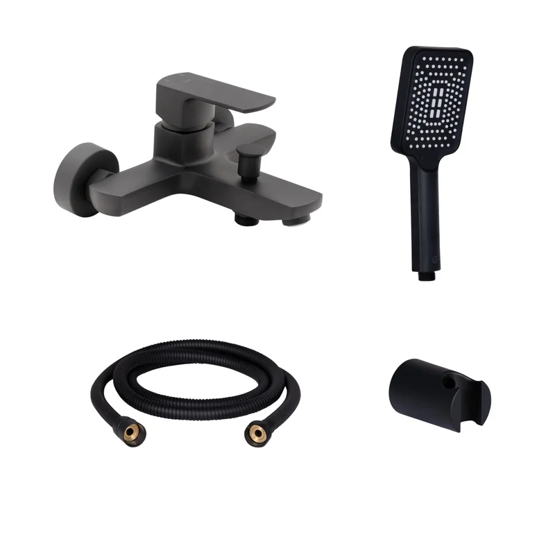 Комплект Qtap Lipno: Змішувач для ванни QTNH3023101DCB + душовий комплект (QT054BL43074+QTRUC125BLM45780+QT829910842854OB)