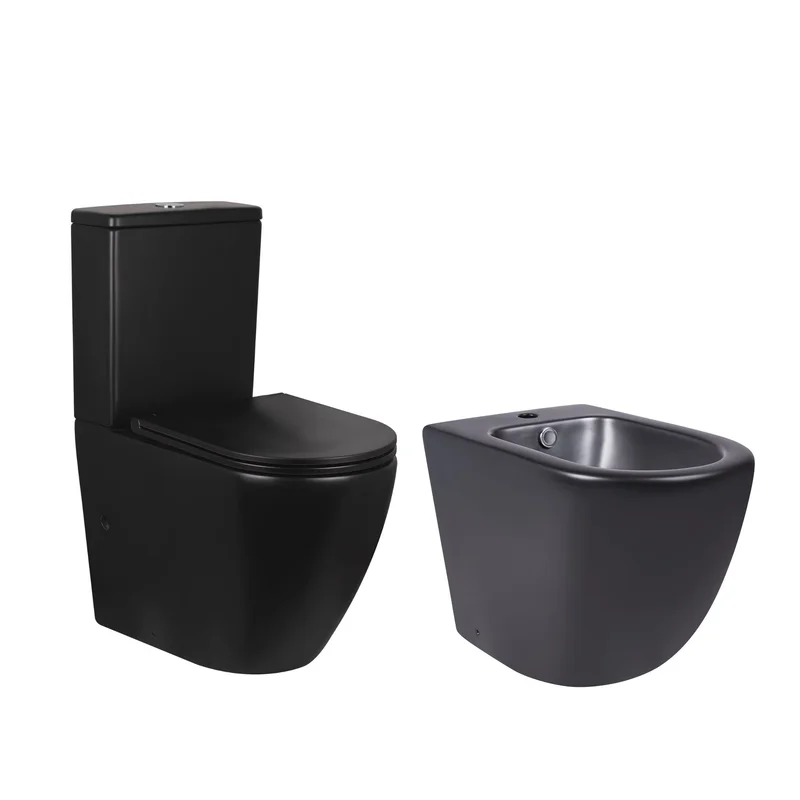 Комплект Qtap Robin Matt Black 2 в 1: унітаз підлоговий Rimless QT13222141ARMB + біде підлогове QT13442141CMB