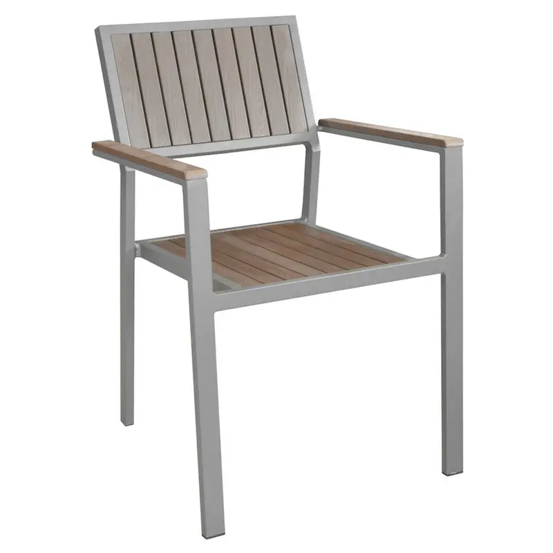 - Поверхня столу, стільців і підлокітників виготовлена з високоміцного поліетилену під деревину.