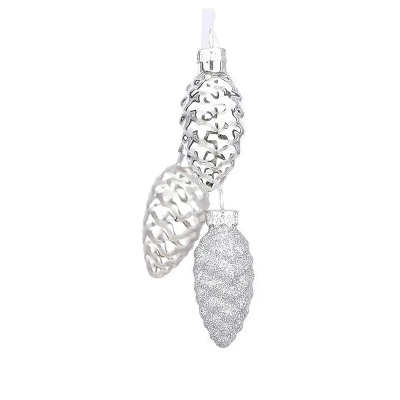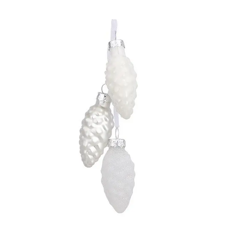 Комплект ялинкових скляних прикрас "3 шишки", білий "House of Seasons" 6х3 см, 2 шт