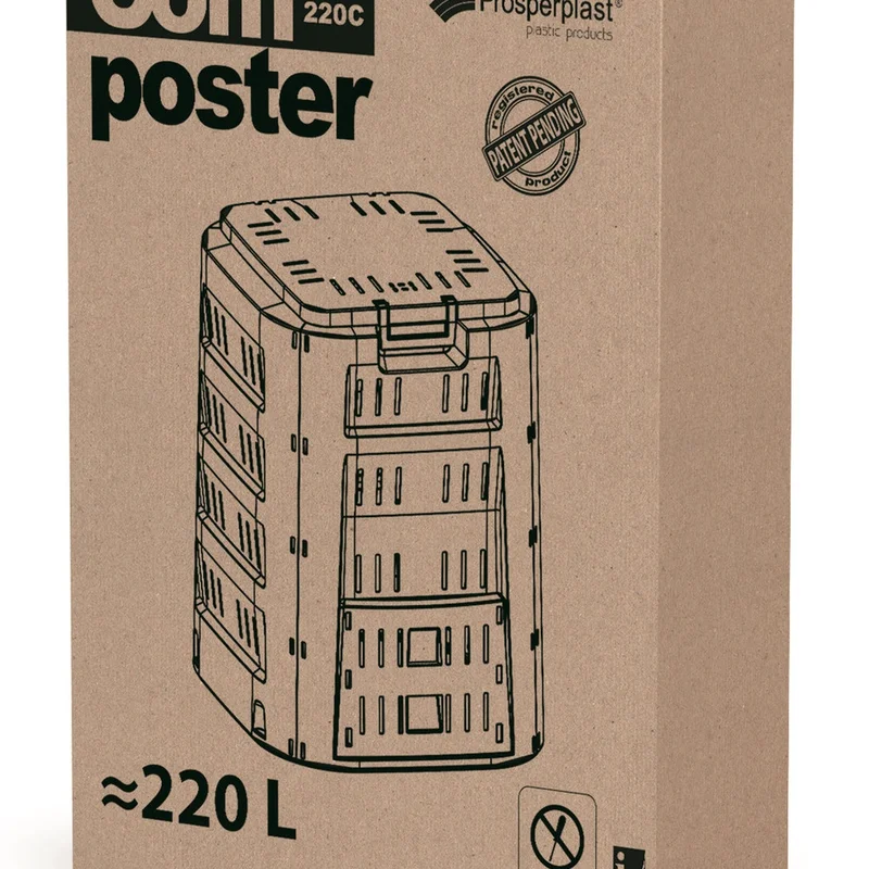 Конструкція передбачає відсутність дна, адже контакт з ґрунтом сприяє біорозкладу. Природні компостні бактерії, відповідальні за отримання натуральних добрив, для найкращої роботи потребують відповідної вологості, вентиляції та затінення — компостер Prosperplast COMPOGREEN 220 л відповідає всім необхідним умовам для отримання найкращого зрілого компосту.