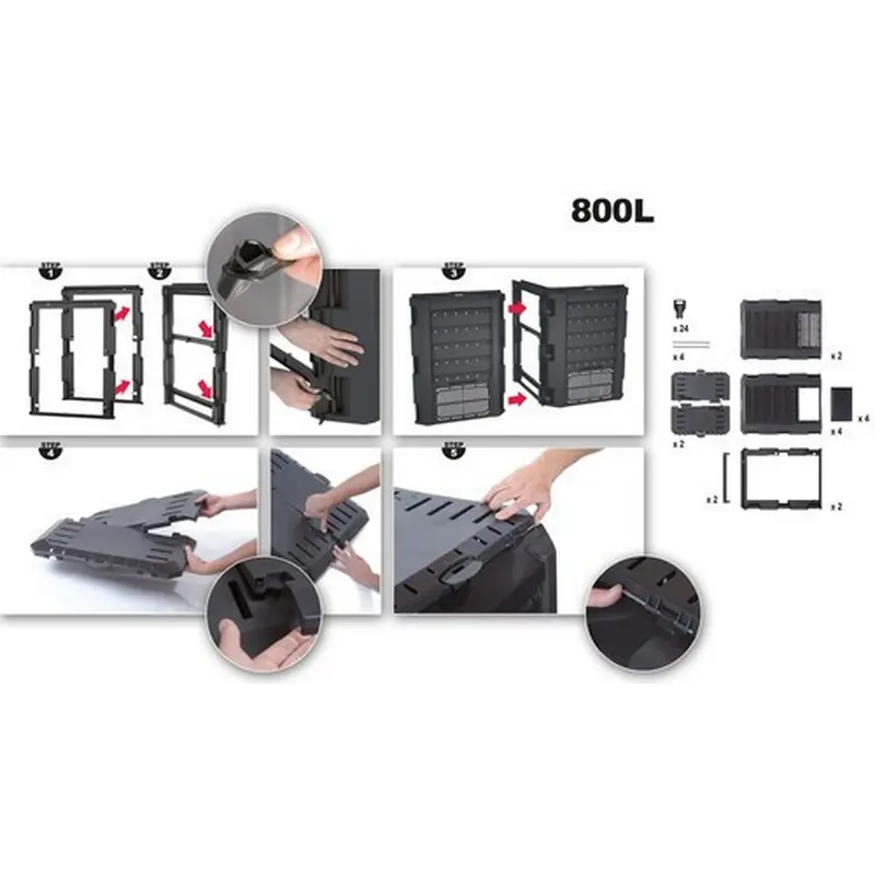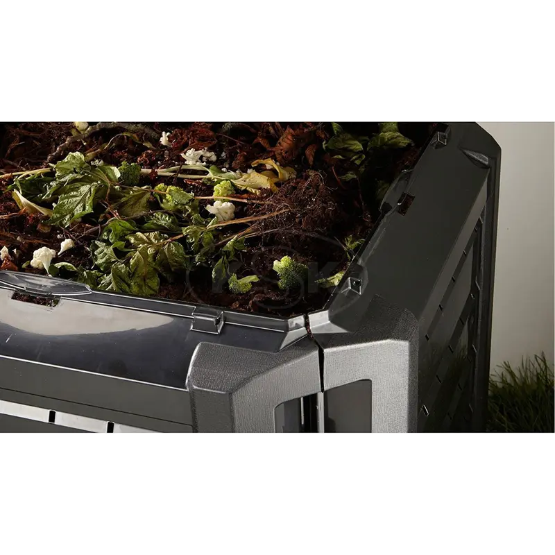 Компостер для сміття Module Compogreen складається з двох модулів. Він поєднує в собі всі переваги традиційного компостера, але його додатковою перевагою є його об'єм і можливість зібрати його в будь-який час коли він вам не потрібен. Компостер може бути встановлений в будь-якому зручному для вас місці на дачній ділянці з метою облагородити і прибрати запах. Враховуючи той факт, що перероблений компост це добриво для квітника або городу.