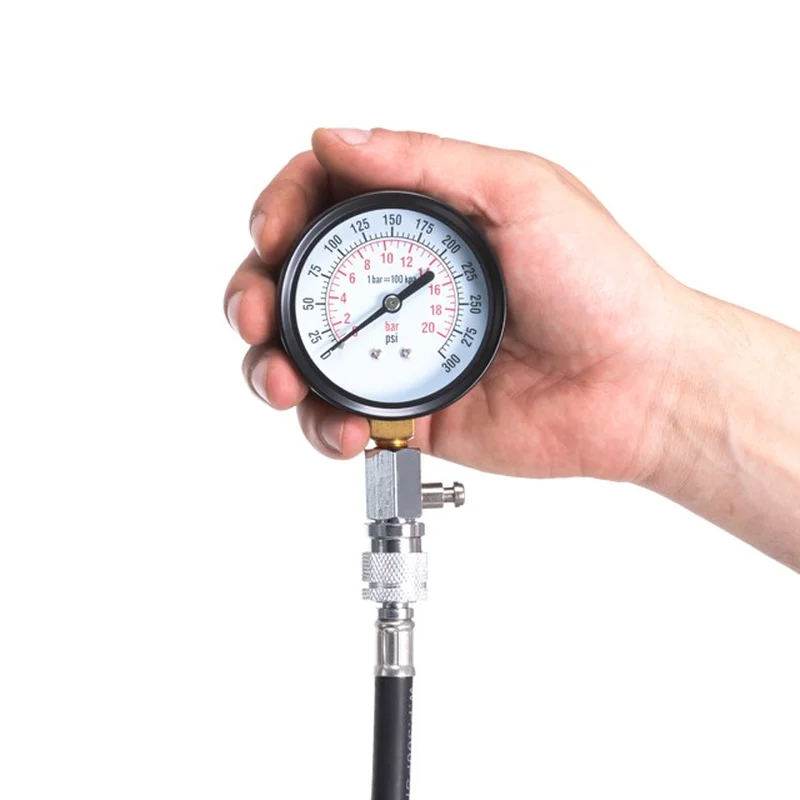 Пристрій вимірює тиск у кінці такту стискання в циліндрах, це дозволяє оцінити стан поршневої та клапанної групи двигунів. Міцні елементи компресометра забезпечують надійне утримання тиску.