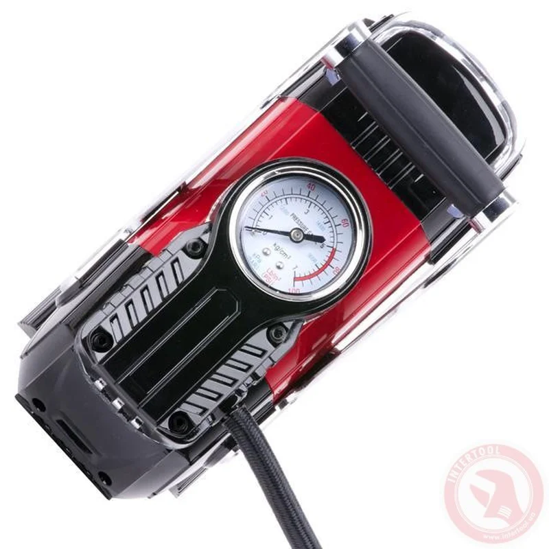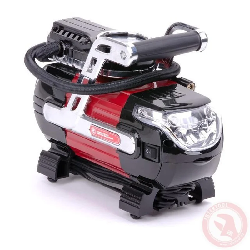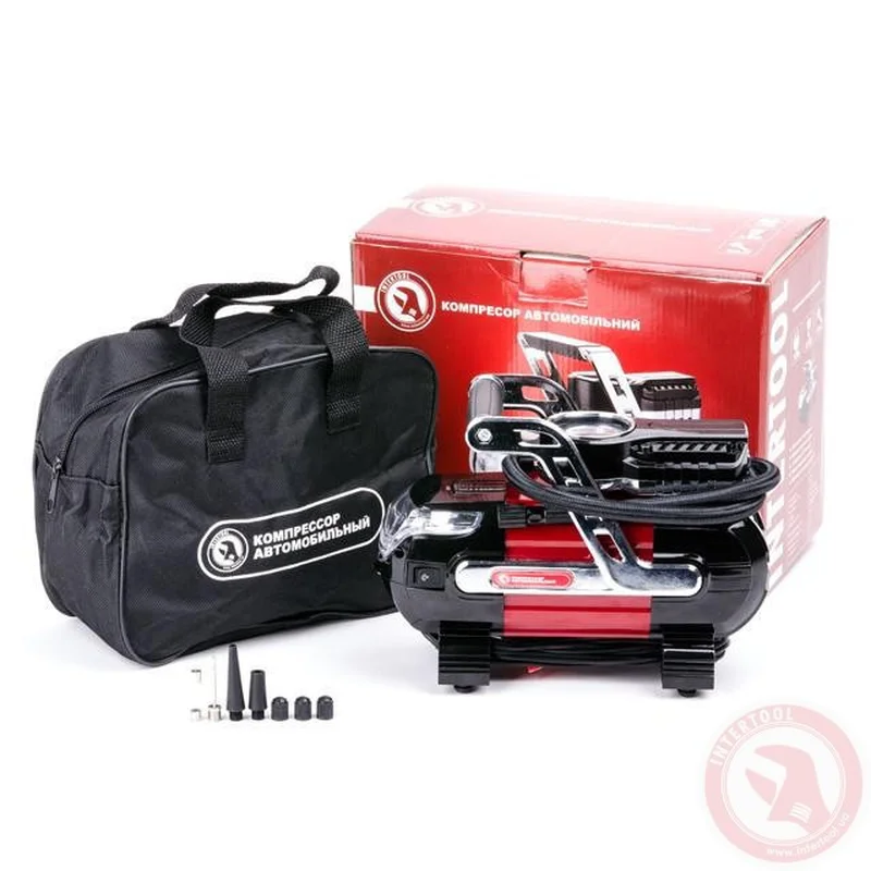 Призначення Оптимальний показник тиску в шинах – обов'язкова умова безпеки в дорозі та довговічній експлуатації шин. Автомобільний компресор INTERTOOL AC-0002 здатний накачати за лічені хвилини колесо вашого авто до необхідного тиску. Оскільки правильний показник тиску допомагає продовжити термін служби шин, зменшує витрату пального та загалом покращує їзду. Продуктивність Максимальний тиск 7 бар, швидкість нагнітання повітря 30 л/хв на виході, дозволяє ефективно виконувати різні завдання. Наприклад, накачати колесо R13 до 2 бар компресор зможе за 2-3 хвилини. Універсальність Окрім іншого, робочі показники компресора дозволяють накачати до робочого стану колеса мотоциклів або велосипеда, а також м'ячі, матраци, надувні дитячі круги та будь-які інші вироби, у тому числі завдяки набору насадок, який постачається в комплекті. Мобільний та зручний Компресор має дуже скромні габарити, тому разом із комплектом та сумкою поміститися навіть у невеликих багажниках. Живлення здійснюється від прикурювача автомобіля 12В, тому ви зможете легко накачати колесо в дорозі. Довжина мережевого дроту 3 метри. Вбудований LED-ліхтар допоможе зручно накачати колесо навіть у темну пору доби, працює як від прикурювача, так і від батарейок ААА типу. Загальні рекомендації 1) Перш ніж увімкнути компресор краще завести двигун, так ви не розрядите акумулятор. 2) Контролюйте тиск накачування за манометром, загальний стандарт автомобільних шин 2 - 2,5 атм. 3) Давайте компресору охолонути, час безперервної роботи не повинен перевищувати 5-10 хвилин.