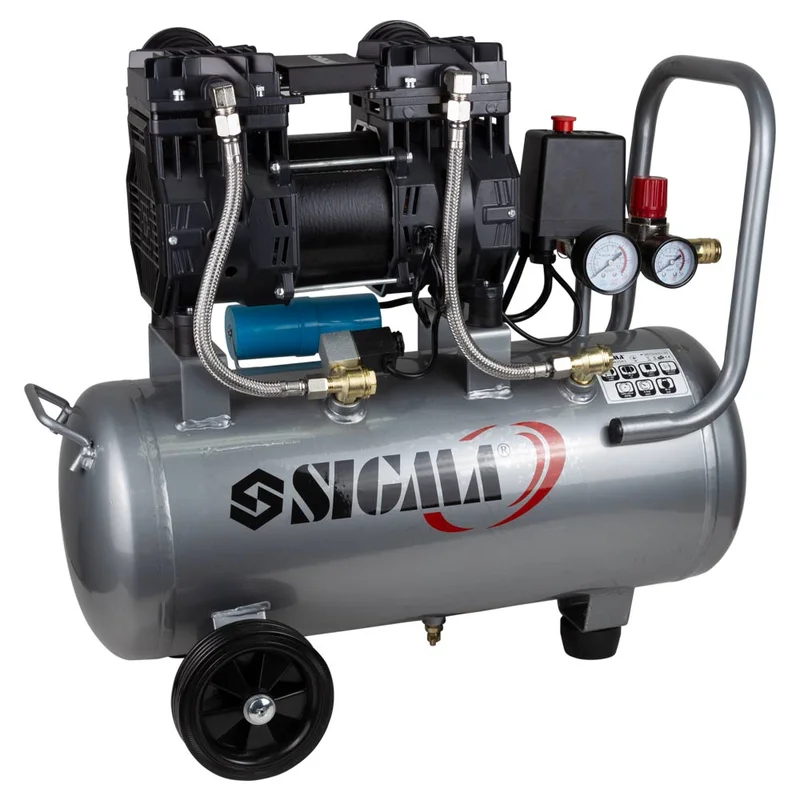 Компресор двоциліндровий безмасляний 1.5кВт 209л/хв 8бар 30л SIGMA (7042541)