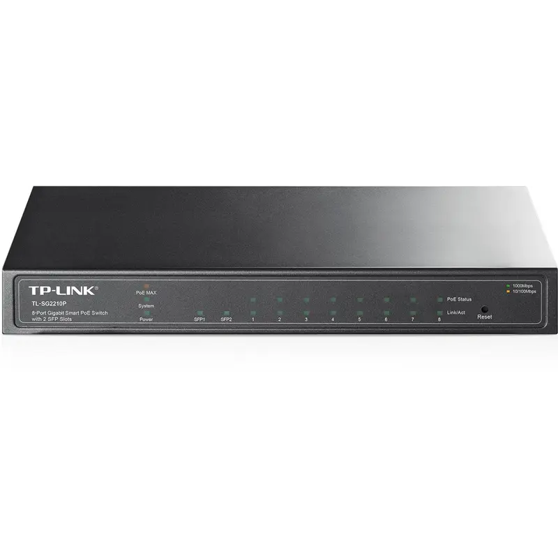 Smart гігабітний комутатор PoE TL-SG2210P обладнаний 8 гігабітними портами RJ45 і 2 SFP-слотами. Всі порти RJ45 підтримують стандарт PoE, забезпечують загальну потужність в 53 Вт і мають зручними функціями управління PoE. Комутатор забезпечує високу продуктивність, має функцію пріоритезації даних (QoS) рівня Enterprise, надійними стратегіями захисту і безліччю функцій управління 2 рівня. Комутатор TL-SG2210P є ефективним і економічним рішенням для мереж малого і середнього бізнесу, які потребують ефективному управлінні. TL-SG2210P підтримує повний набір функцій другого рівня, включаючи протокол агрегації каналів (Link Aggregation Group), 802.1Q VLAN, список контролю доступу (ACL), функцію пріоритезації даних (QoS, L2 - L4), захист від мережевих атак (Storm Control) і IGMP snooping (функцію відстеження мережевого трафіку), які дозволять підприємствам малого та середнього бізнесу створювати масштабовані, а також продуктивні і захищені мережі. Більш того, простий у використанні веб-інтерфейс управління забезпечить швидку установку і настройку пристрою. Все це робить даний пристрій ідеальним для вашої робочої мережі. Power over Ethernet з підтримкою IEEE 802.3af Комутатор TL-SG2210P обладнаний 8 портами PoE, що підтримують стандарт IEEE 802.3af і забезпечують загальну потужність в 53 Вт для всіх пристроїв, що підтримують стандарт 802.3af. Комутатор представляє собою ефективне і економне пристрій для роботи з точками доступу, камерами спостереження, IP-телефонами і іншими пристроями, що підтримують PoE, дозволяючи позбавитися від зайвих кабелів живлення. Компактне і багатофункціональний пристрій TL-SG2210P ідеально підходить для використання технології PoE разом з бездротовими точками доступу або IP-камерами спостереження при створенні проектів або організації мереж малих підприємств. Розширені можливості функції пріоритетності даних (QoS) Щоб передача відео, голосового трафіку і інших даних проводилася в рамках однієї мережі, даний комутатор підтримує функцію пріоритезації даних (QoS). Адміністратор може налаштувати пріоритетність трафіку безліччю способів, в тому числі шляхом вказівки пріоритетності портів або налаштувавши пріоритет 802.1P (802.P Priority) і DSCР (DSCP Priority), щоб забезпечити надійну роботу голосових і відео додатків без затримок і розривів. Широкий набір функцій 2 рівня Комутатор TL-SG2210P підтримує повний набір функцій другого рівня, включаючи 802.1Q Tag VLAN, ізолювання портів (Port Isolation), віддзеркалення порту (Port Mirroring), STP / RSTP / MSTP, протокол агрегації каналів (Link Aggregation Group) і функцію контролю потоку 802.3x (Flow Control). Комутатор також володіє розширеними функціями мережевого управління, такими як виявлення петель (Loop Back Detection), діагностика кабельних з’єднань (Cable Diagnostics) і відстеження мережевого трафіку (IGMP Snooping). Остання функція забезпечує інтелектуальне напрямок multicast-потоку тільки на адресу відповідних кінцевих одержувачів, в той час як функція IGMP throttling & filtering контролює кожного користувача на рівні порту для запобігання несанкціонованого multicast-доступу. Широкі можливості управління рівня Enterprise Комутатор TL-SG2210P простий у використанні і управлінні. Він підтримує звичні для користувачів способи управління, включаючи інтуїтивний графічний веб-інтерфейс (GUI), інтерфейс командного рядка (CLI), а також протоколи SNMP (v1 / 2/3) і RMON, що дозволяють пристрою виконувати збір інформації і відправляти попереджувальні сигнали в разі відхилень від нормальног