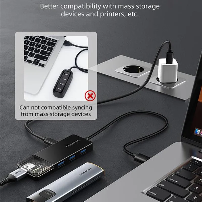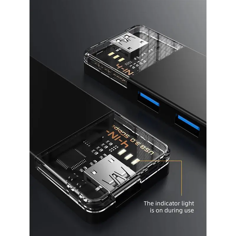 Дозволяє збільшити кількість USB роз’ємів на вашому пристрої та одночасно підключати або заряджати до 4 пристроїв. Концентратор підтримує функцію OTG, таким чином ви можете підключити клавіатуру, флеш-пам’ять або мишу до пристрою, що підтримує цю функцію.
