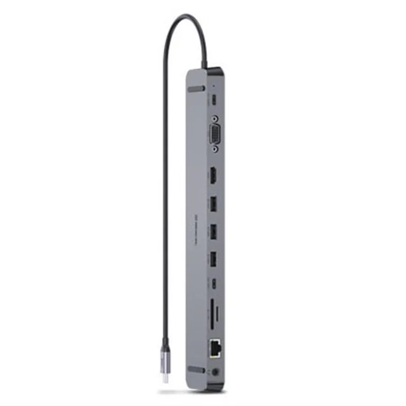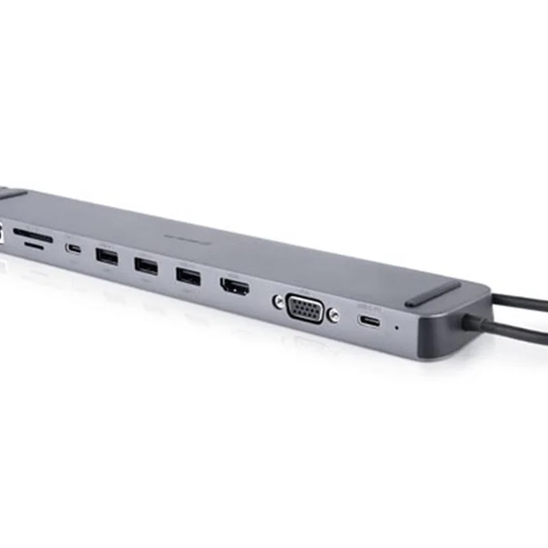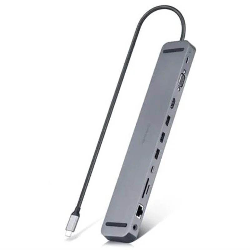 Концентратор REAL-EL CQ-1000 USB3.0х3/USB-C/HDMI/VGA/RJ45/SD/TF/3.5 mm audio, 0.4m, Space Grey