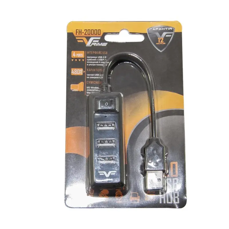 Концентратор USB 2.0 Frime 4хUSB2.0 Black (FH-20000)