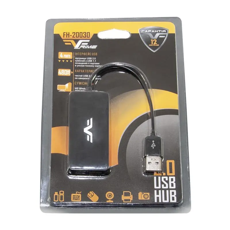 Концентратор USB 2.0 Frime 4хUSB2.0 Black (FH-20030)