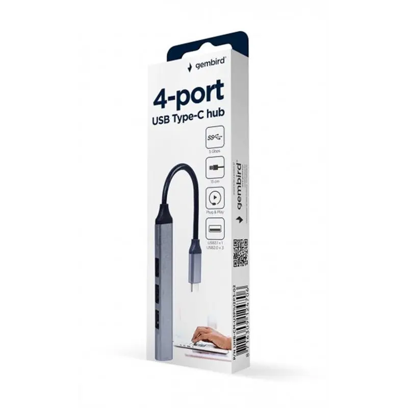 Концентратор USB Type-C Gembird 1xUSB3.1, 3хUSB2.0, метал, Grey (UHB-CM-U3P1U2P3-02)