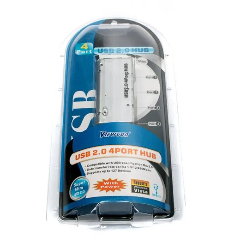 Компактний концентратор USB VE 410 Viewcon з додатковим джерелом живлення для підключення до 4-х пристроїв.Особливості:-інтерфейс: USB 2.0;-швидкість передачі даних: 480 Мбіт / с;-кількість портів: 4;-живлення: по шині USB або від мережі 220В;-блок живлення в комплекті