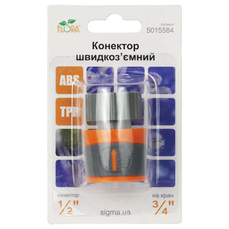 Конектор ½" швидкознімний на кран н/р ¾" аквастоп (ABS+TPR) FLORA (5015584)