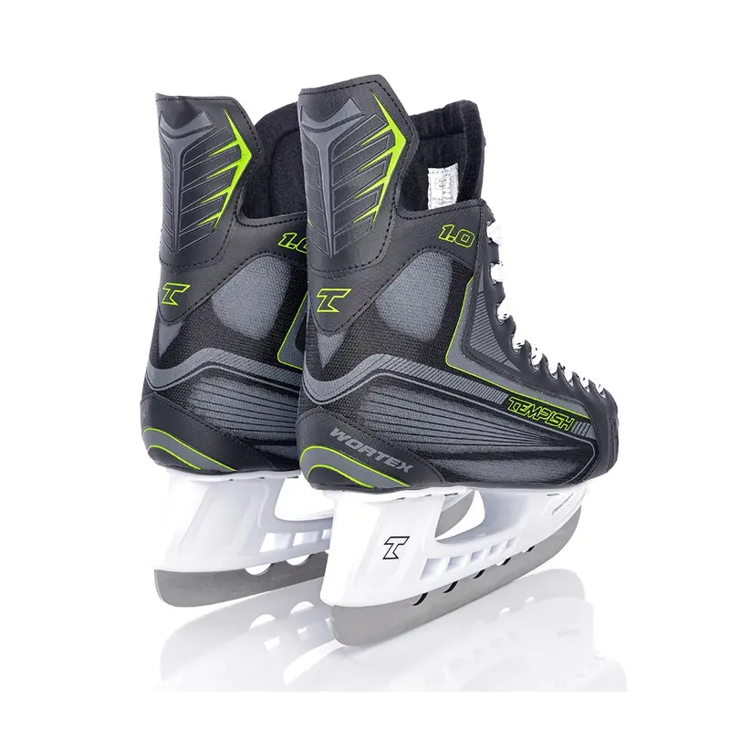 Tempish Wortex - спортивные ледовые коньки для игры в хоккей. Предназначены для игроков среднего уровня и любительского спорта. Конструкция коньков рассчитана на большую регулярную нагрузку, адаптирована к требованиям активных игроков.