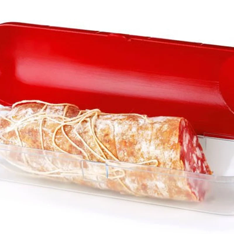 Пластиковий контейнер виготовлений у формі ковбаси ідеально підходить для зберігання різних ковбасних виробів.