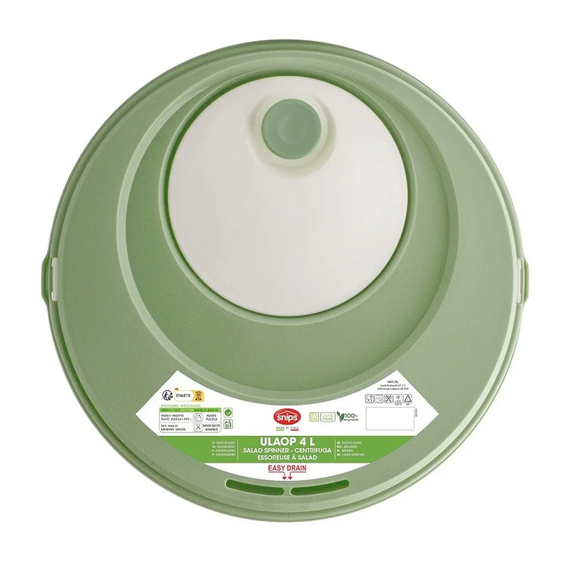 Контейнер для миття та сушки салату Snips багаторазового використання (0% BPA) виготовлений з харчового пластику, що підлягає вторинній переробці. Виріб можна зберігати в холодильнику та морозильній камері. Також контейнер підходить для миття в посудомийній машині. Використання у мікрохвильовій печі недопустиме.