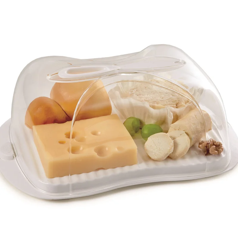 Контейнер для сиру Snips об'ємом 3 літри, укомплектований ножем для подачі, не лише на тривалий час збереже свіжість продуктів, а й приємно вразить своїм функціоналом. Піднос та ніж універсального білого кольору, а також прозора кришка стильної форми роблять виріб ідеальним для подачі сиру безпосередньо на стіл.