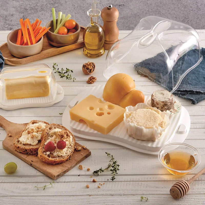 Спеціальні защібки з двох боків забезпечують герметизацію та попереджують обвітрювання продукту. Контейнер для сиру Snips багаторазового використання (0% BPA), виготовлений з харчового пластику, що підлягає вторинній переробці. Виріб можна зберігати в холодильнику та морозильній камері. Також контейнер підходить для миття в посудомийній машині. Використання у мікрохвильовій печі недопустиме.