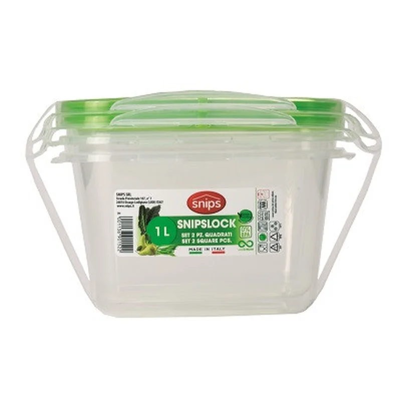Набір з 2 харчових контейнерів SNIPSLOCК для холодильника й морозильної камери: вони зберігають аромат фруктів, овочів. Напівпрозорі елементи корпусу дозволять швидко визначити вміст контейнера, 4 зажими, що закриваються і прокладка гарантують ідеальне зберігання вмісту і безпечне транспортування продуктів.