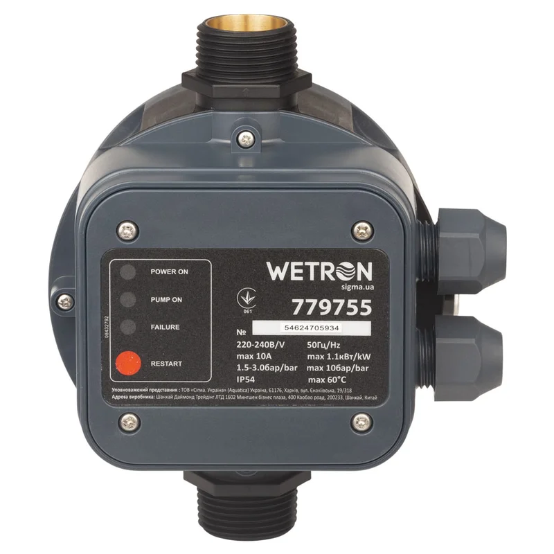 Контролер тиску електронний 1.1кВт Ø1 "+ рег тиску вкл 1.5-3.0 bar WETRON DSK-8.1 (779755)