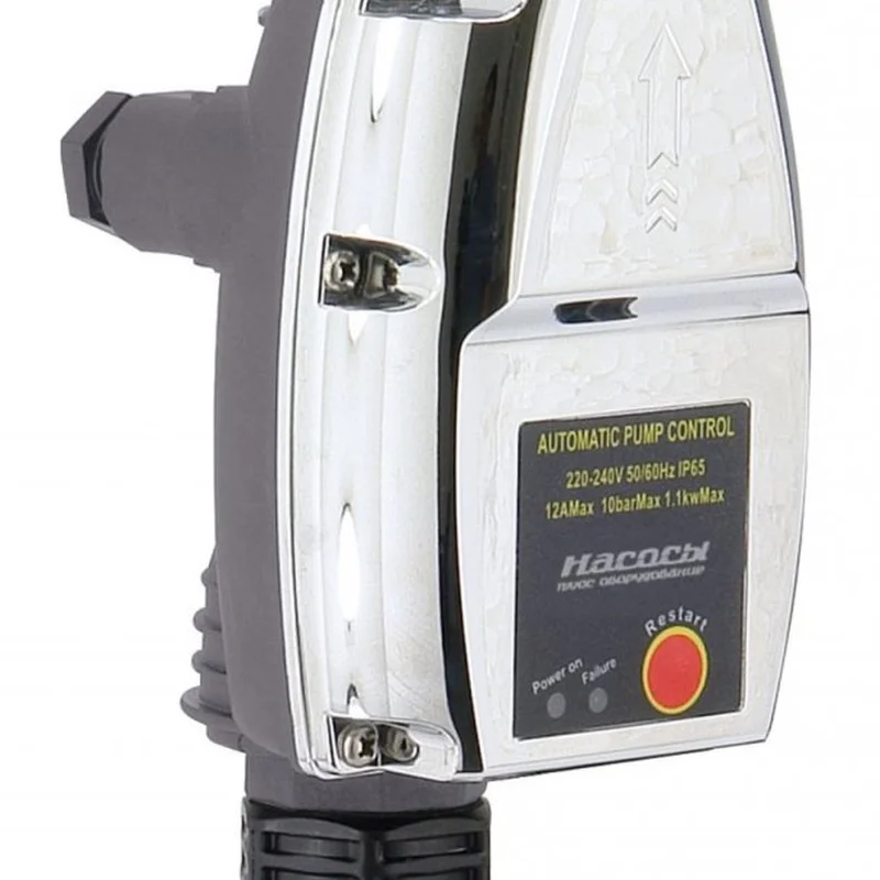 Электронные контроллеры совмещают в себе функцию реле давления (включают насос по установленному значению давления в системе), реле протока (выключают насос при отсутствии протока в системе), с защитой от "сухого хода" ( выключают насос при отсутствии перекачиваемой жидкости в системе). Некоторые модели имеют функцию автоматического перезапуска после срабатывания защиты по "сухому ходу" и возможность ручной регулировки давления включения, дополнительно встроен манометр.