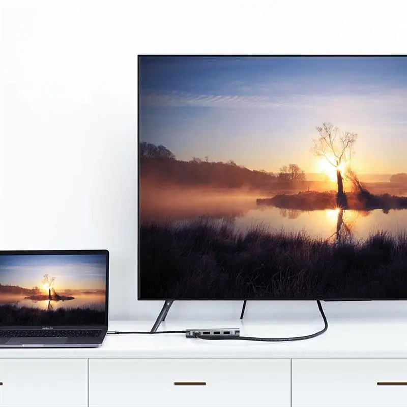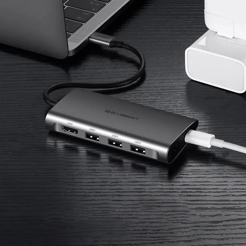 Багатофункціональна та компактна USB-С док-станція у міцному алюмінієвому корпусі Ugreen CM121 (50538) пропонує вісім додаткових портів, чим значно розширяє можливості вашого ПК, ноутбука чи смартфона. Підключайте свій гаджет до телевізора через інтерфейс HDMI та відтворюйте зображення з розділовою здатністю 4K UHD. З’єднюйтесь з Gigabit Ethernet через роз’єм RJ45 та ефективно працюйте в офісі, грайте в ігри, дивіться фільми. Док станція Ugreen CM121 має два слоти для карт пам’яті – ви матимете можливість здійснювати обмін відео, фотографіями та аудіофайлами одночасно з двома картами - TF та SD. Вона оснащена трьома портами USВ 3.0 зі швидкістю 5 Гбіт/с, що у десять разів швидше, ніж USВ 2.0. Це дозволяє одночасне підключення і безперебійну роботу трьох USВ приладів, таких як комп’ютерна миша, клавіатура, принтер, веб-камера, флеш накопичувач тощо. За допомогою цієї док-станції ви зможете з легкістю працювати там, де немає доступу до комп’ютера – просто під’єднайте до смартфона усі необхідні периферійні пристрої. Порт USB-C з подачею живлення 100 Вт забезпечить швидку зарядку усім підключеним пристроям. Високу продуктивність та надійність док-станції Ugreen CM121 забезпечують три незалежні внутрішні чіпи, кожен з яких відповідає за свою функцію – RTL5411, GL3224 та VL102.